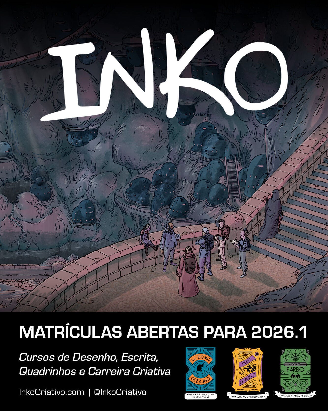 A INKO é uma escola de mídias criativas, com mais de 7 anos de tradição e um corpo docente incrível composto do diversos autores e autoras da cena do quadrinho nacional. E, começando este ano, eu sou um deles! Minha primeira turma e Arte-Final foi concluída com sucesso recentemente e posso dizer que foi uma experiência muito boa! E agora, as matrículas para o primeiro semestre de 2026 estão abertas!