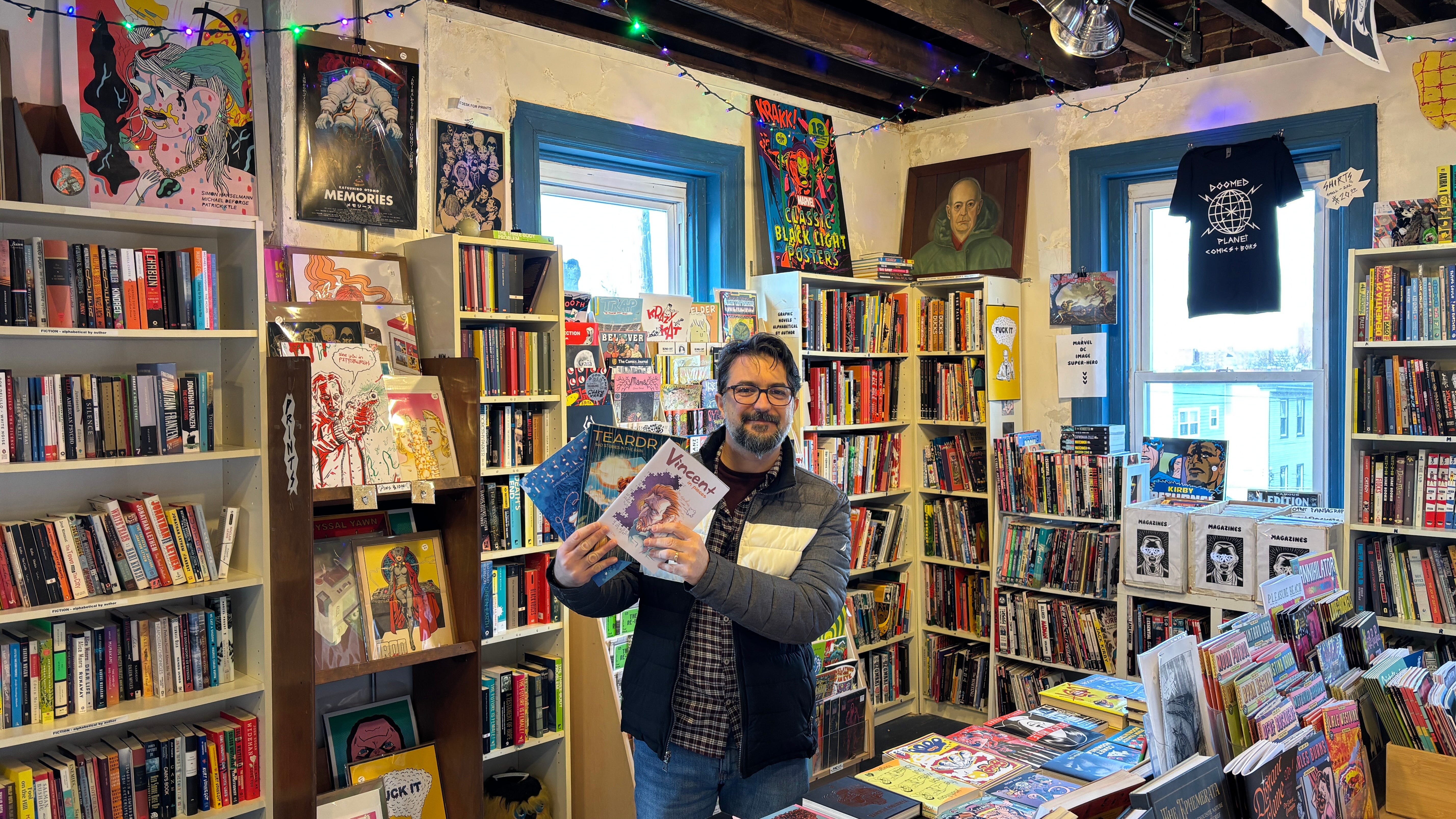 Depois, fui até a Doomed Planet Comics (outro nome bacana!), bem mais focada em quadrinhos independentes e alternativos. Agora, meu trabalho pode ser encontrado em dois pontos muito relevantes de Pittsburgh.